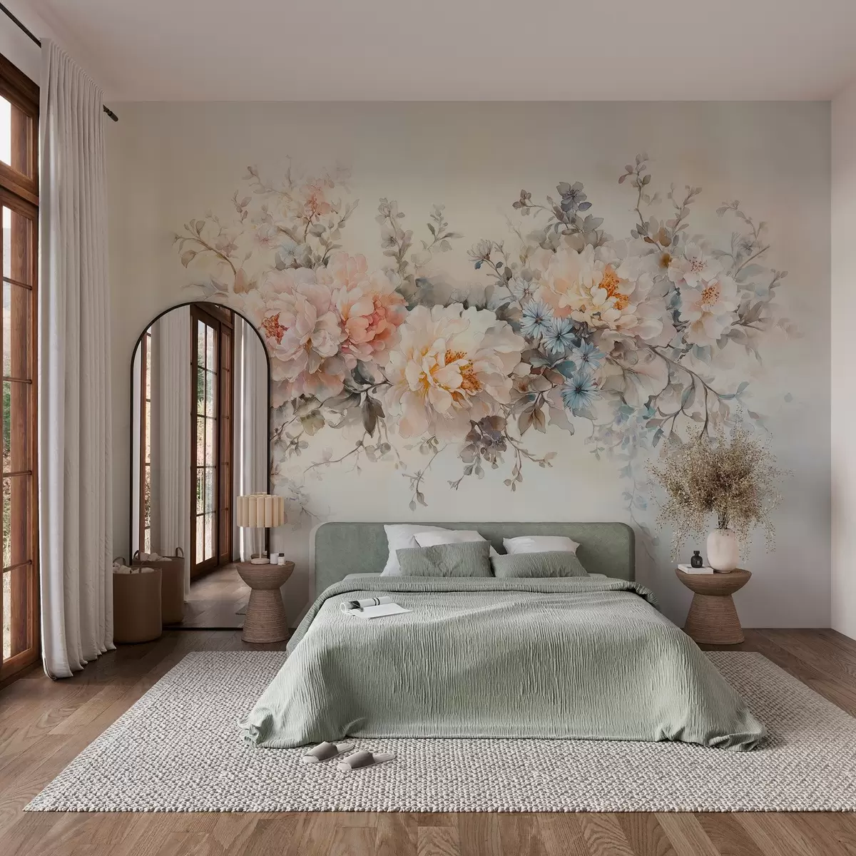 Fototapety jemné akvarelové květy v pastelových odstínech růžové, béžové a modré Č. w03724