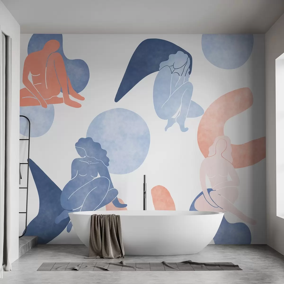 Fototapety Geometrické abstrakce s ženskými siluetami, boho styl, modrá, béžová, růžová Č. w03753v1