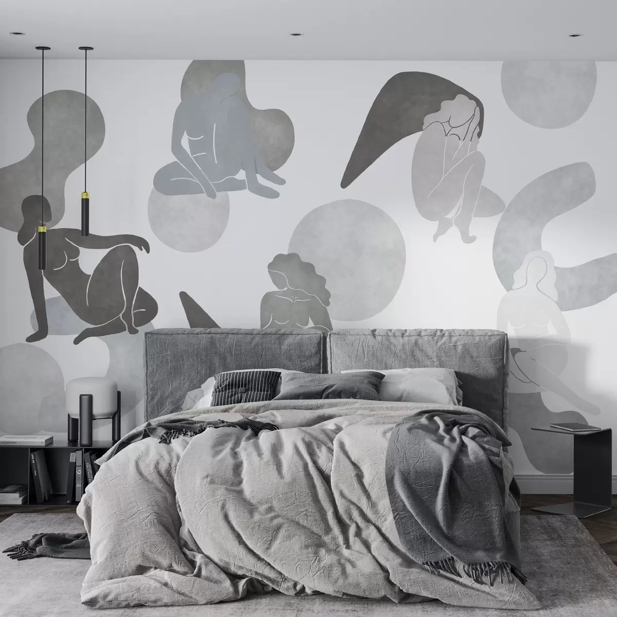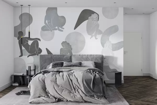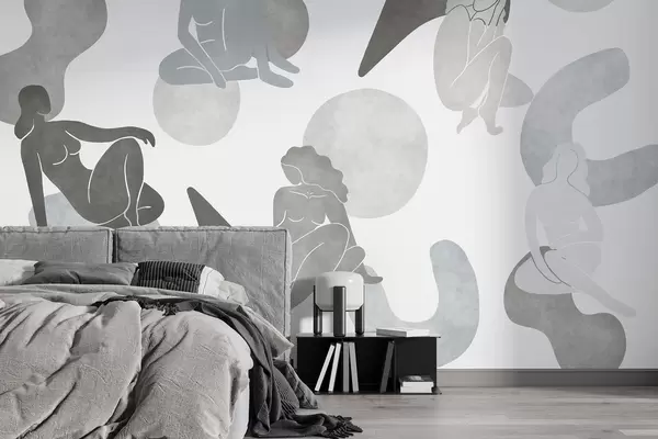 Fototapety Geometrické abstrakce s ženskými siluetami, boho styl, šedé barvy Č. w03753v5