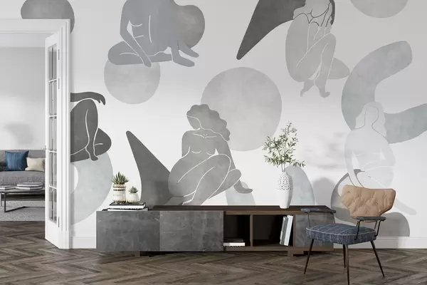 Fototapet Geometrické abstrakce s ženskými siluetami, boho styl, šedé barvy w03753v5