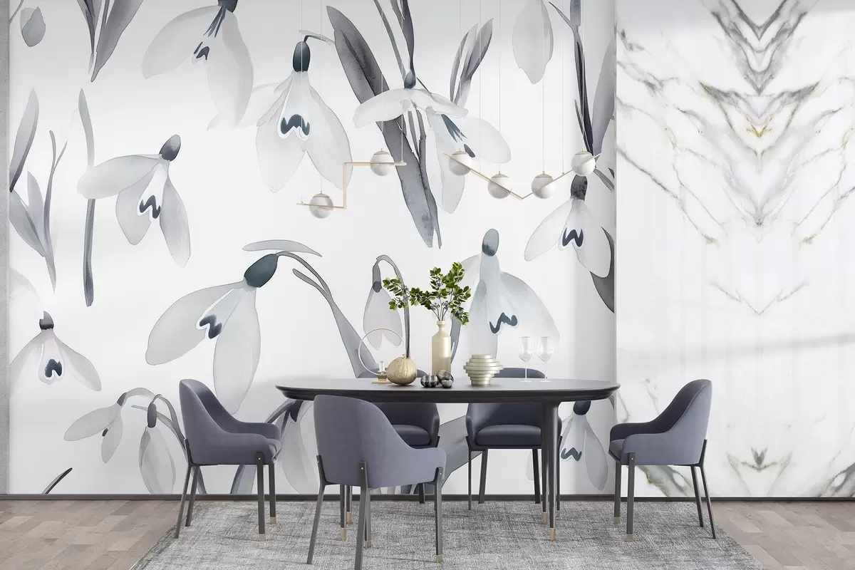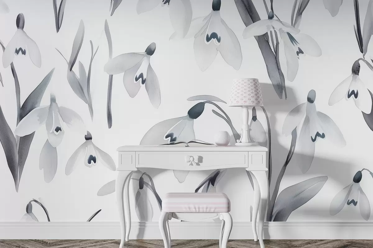 Fototapety Sněženky květiny v akvarelovém stylu, šedé barvy Č. w03754v1