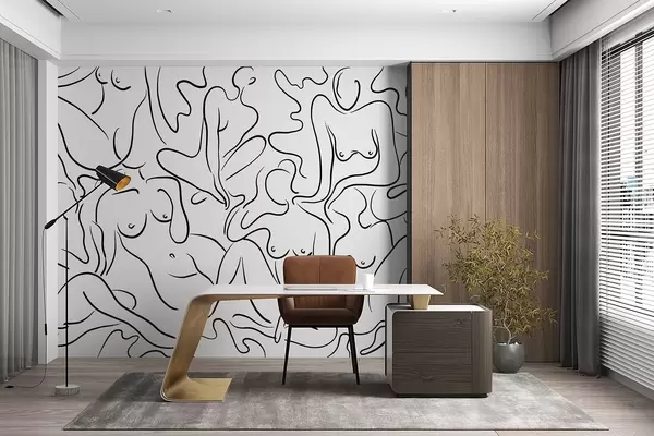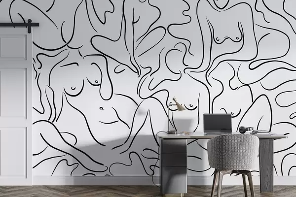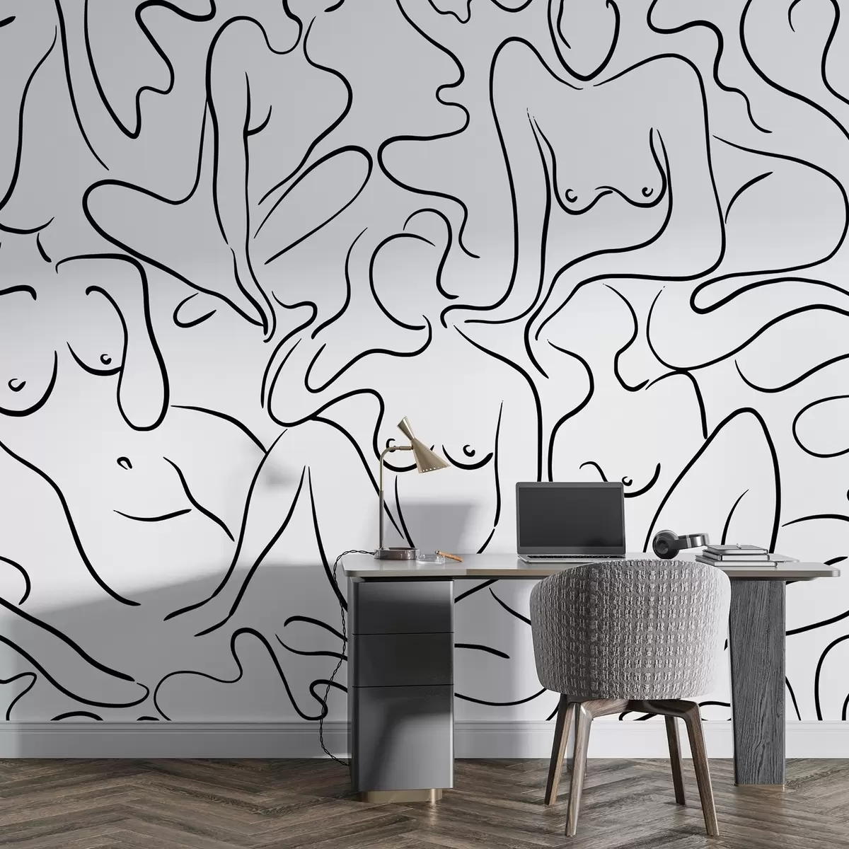 Fototapety Čárová kresba siluet ženských těl, abstrakce, černá barva Č. w03755