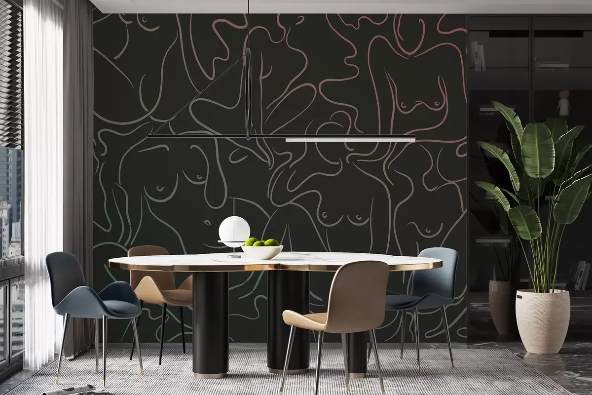 Fototapety Kresba anatomických siluet, abstrakce, tmavé pozadí Č. w03755v2