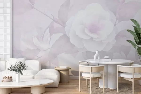 Fototapet Jemný pastel s květy kamélie na větvi, růžové barvy w03760v2