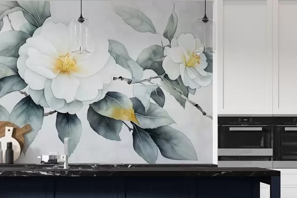 Fototapety Akvarelový styl květů kamélie na větvi, přírodní barvy Č. w03761