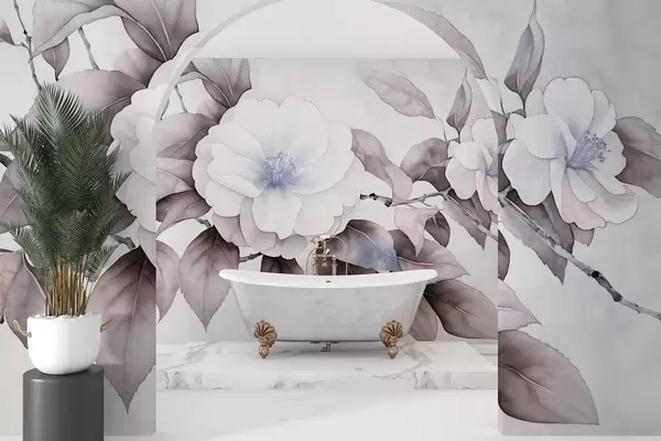 Fototapety Akvarelový styl květy kamélie na větvi, fialové barvy Č. w03761v1