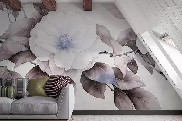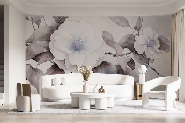 Fototapety Akvarelový styl květy kamélie na větvi, fialové barvy Č. w03761v1