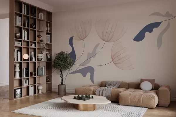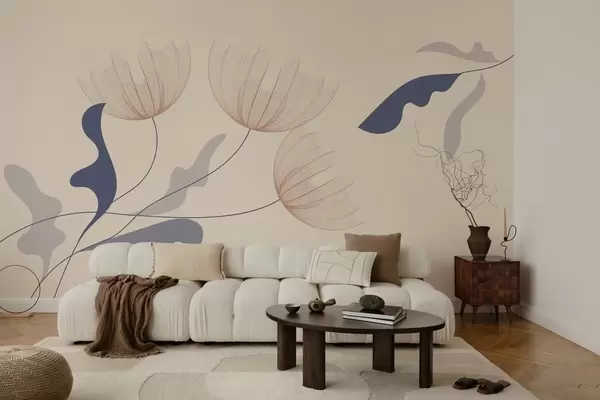 Fototapet elegantní minimalistické květiny v modrých tónech na béžovém pozadí w03763