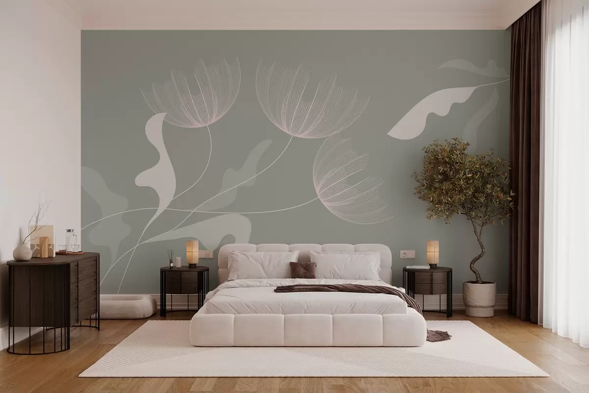 Fototapety elegantní minimalistické květiny v zelených tónech na béžovém pozadí Č. w03763v2
