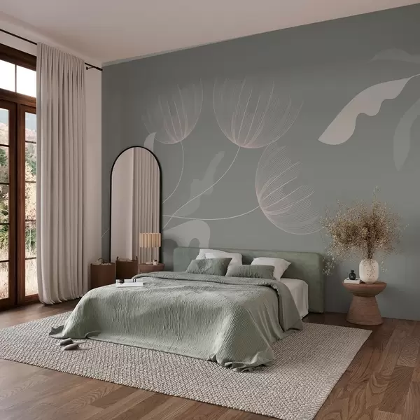 Fototapety elegantní minimalistické květiny v zelených tónech na béžovém pozadí Č. w03763v2