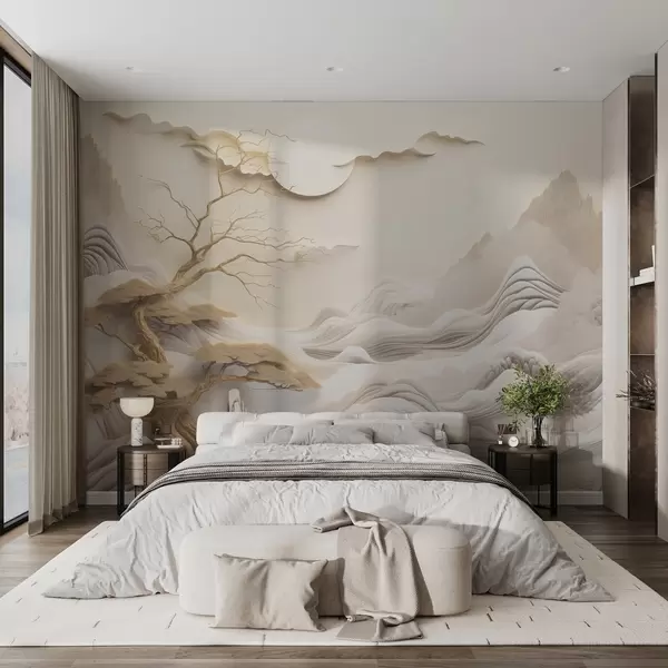 Fototapety Orientální krajina se stromy a horami Č. w03803