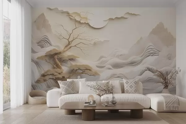 Fototapety Orientální krajina se stromy a horami Č. w03803