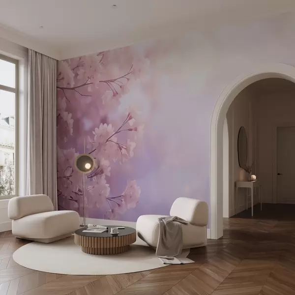 Fototapety Větve sakury s růžovými květy na pastelovém pozadí Č. w03804
