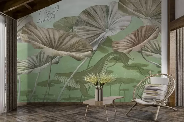 Fototapety Velryba mezi obřími lotosy v zelené vodě Č. w03807