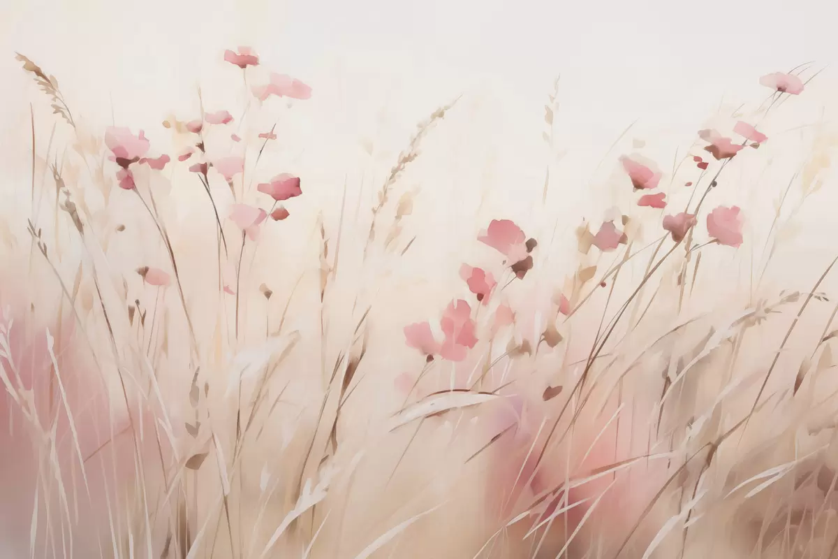 Fototapety Divoké květiny v suché trávě imitující akvarel Č. w03849