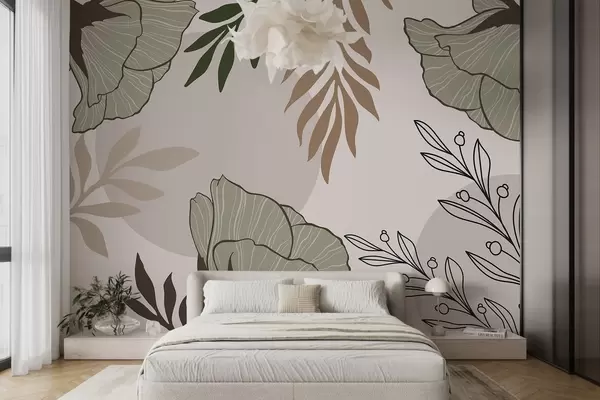 Fototapety Květy a listy v abstraktní kompozici Č. w03856