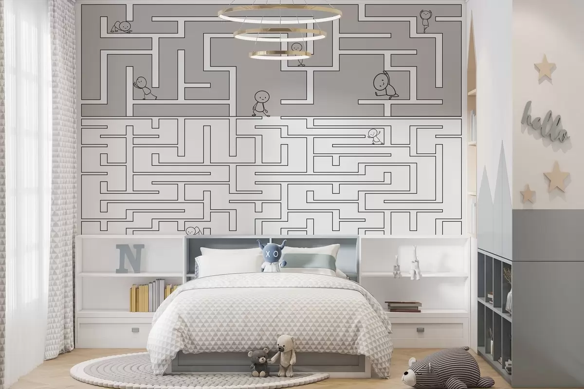 Fototapety Labyrint ve světle šedé a bílé barvě Č. w03873v5