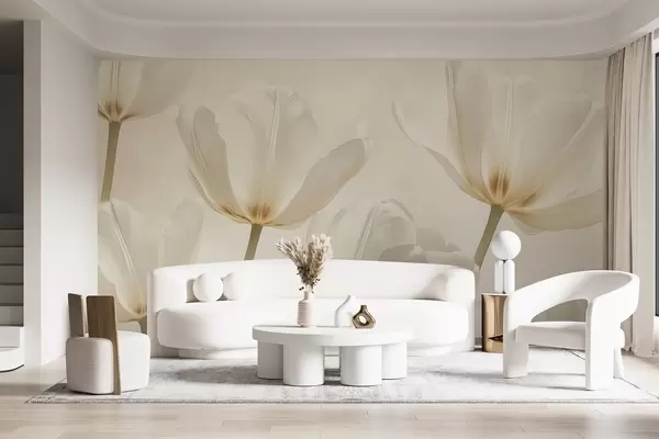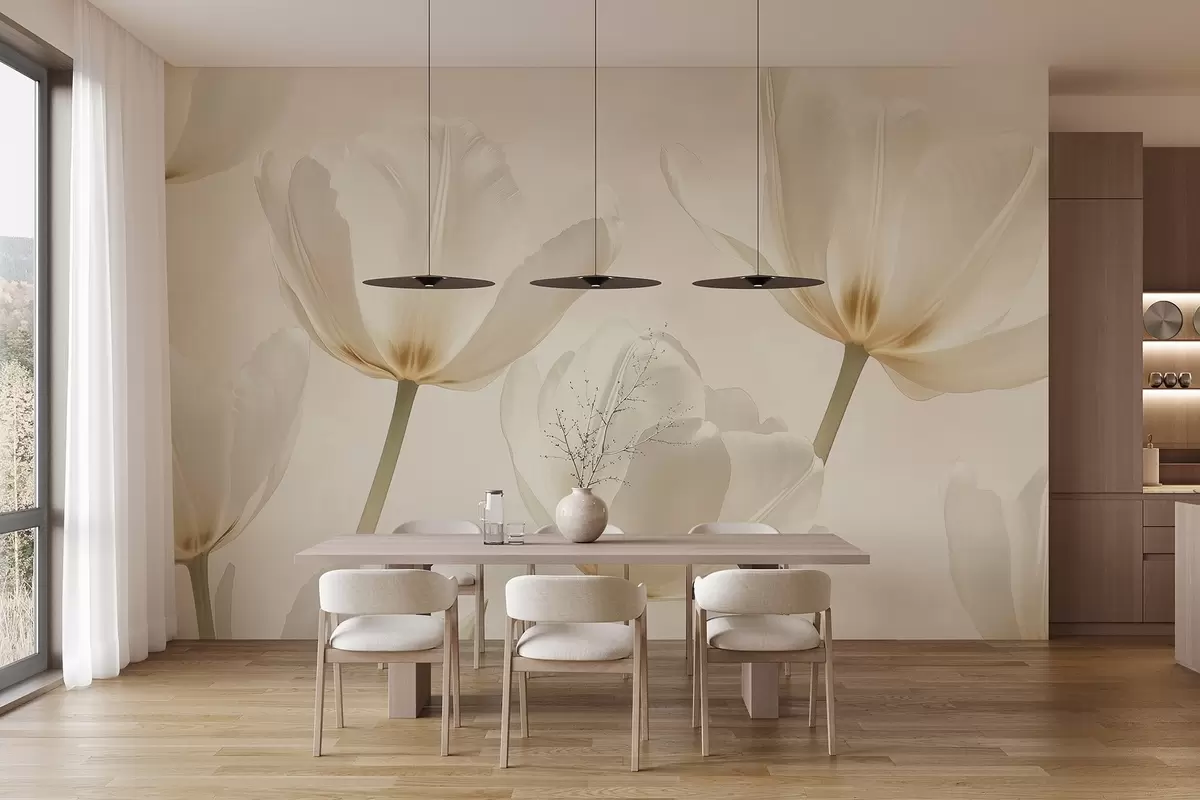 Fototapety Krásné tulipány, květinové, béžové barvy, realismus Č. w03877