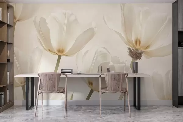 Fototapety Krásné tulipány, květinové, béžové barvy, realismus Č. w03877