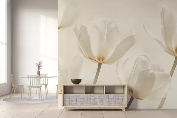 Fototapety Krásné tulipány, květinové, béžové barvy, realismus Č. w03877