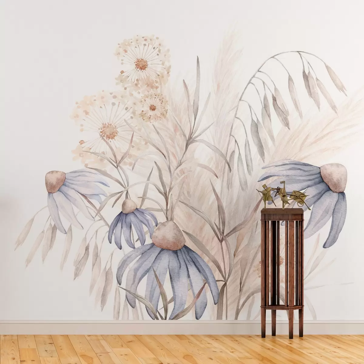 Fototapety Pampelišky a květy mezi suchými bylinami Č. w03908