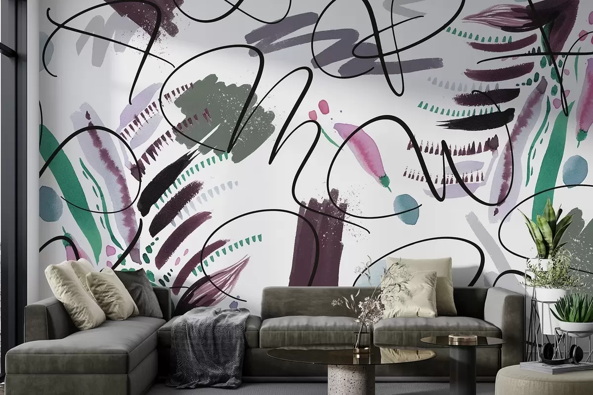Fototapety Tušová písmena, kaligrafie, tahy štětcem, pastelové barvy, abstrakce Č. w03912v1