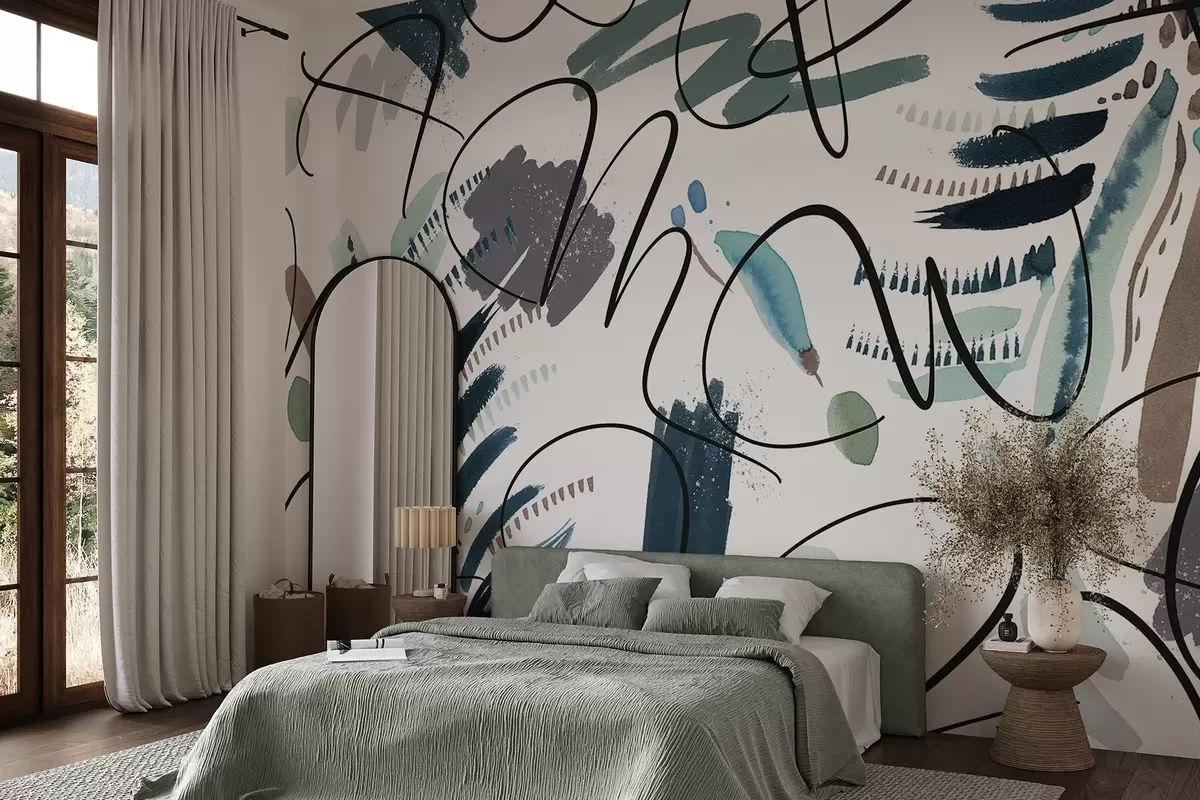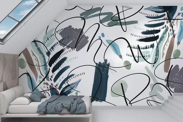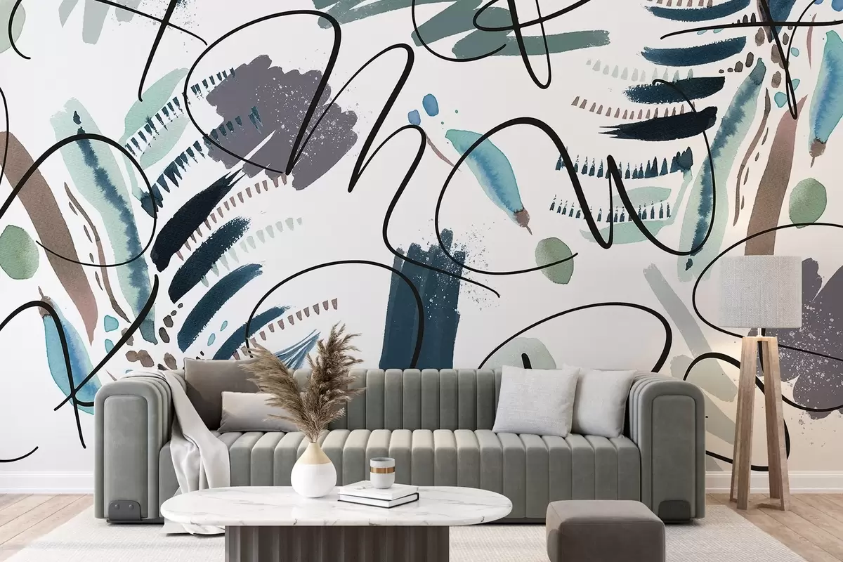 Fototapety Inkoustová písmena, kaligrafie, tahy štětcem, modré barvy, abstrakce Č. w03912v2