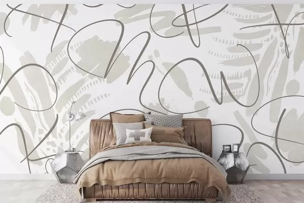 Fototapety Kaligrafická abstrakce s písmeny, tahy štětcem, béžová barva Č. w03913