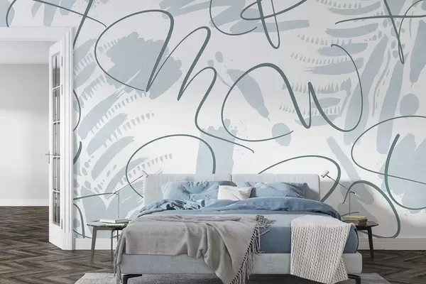Fototapety Kaligrafická abstrakce s písmeny, tahy štětcem, modrá barva Č. w03913v1