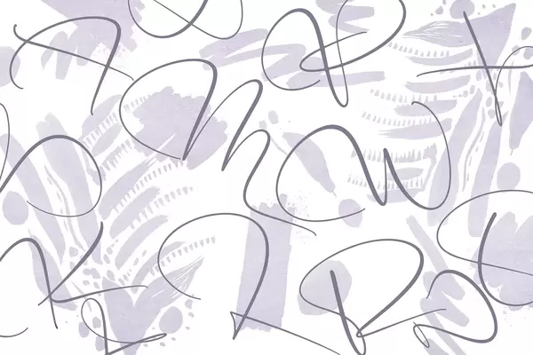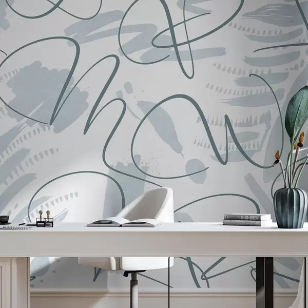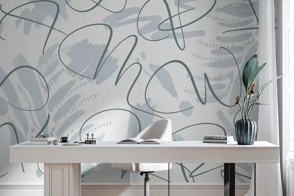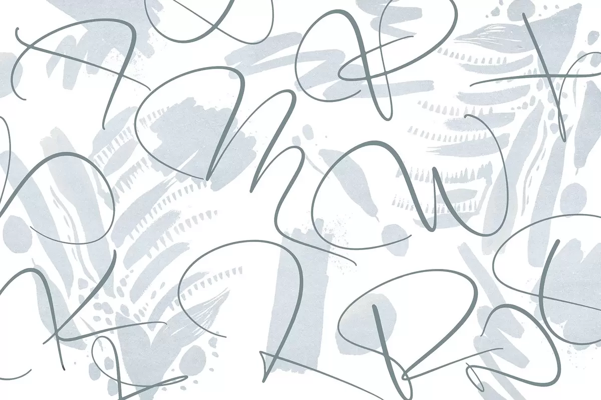 Fototapety Kaligrafická abstrakce s písmeny, tahy štětcem, modrá barva Č. w03913v1