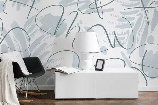 Fototapety Kaligrafická abstrakce s písmeny, tahy štětcem, modrá barva Č. w03913v1