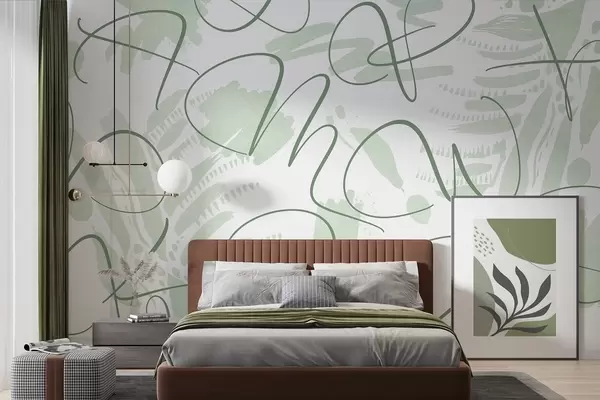 Fototapety Kaligrafická abstrakce s písmeny, tahy štětcem, zelená barva Č. w03913v3