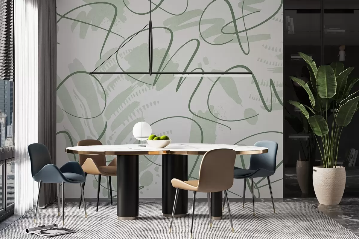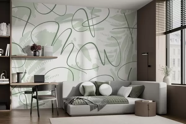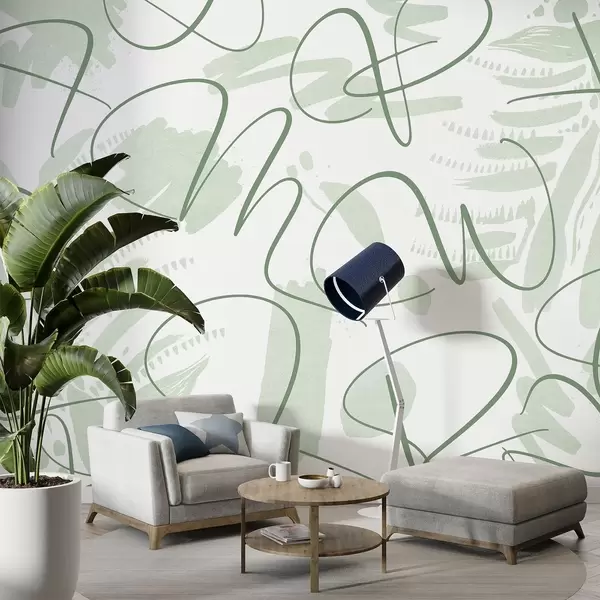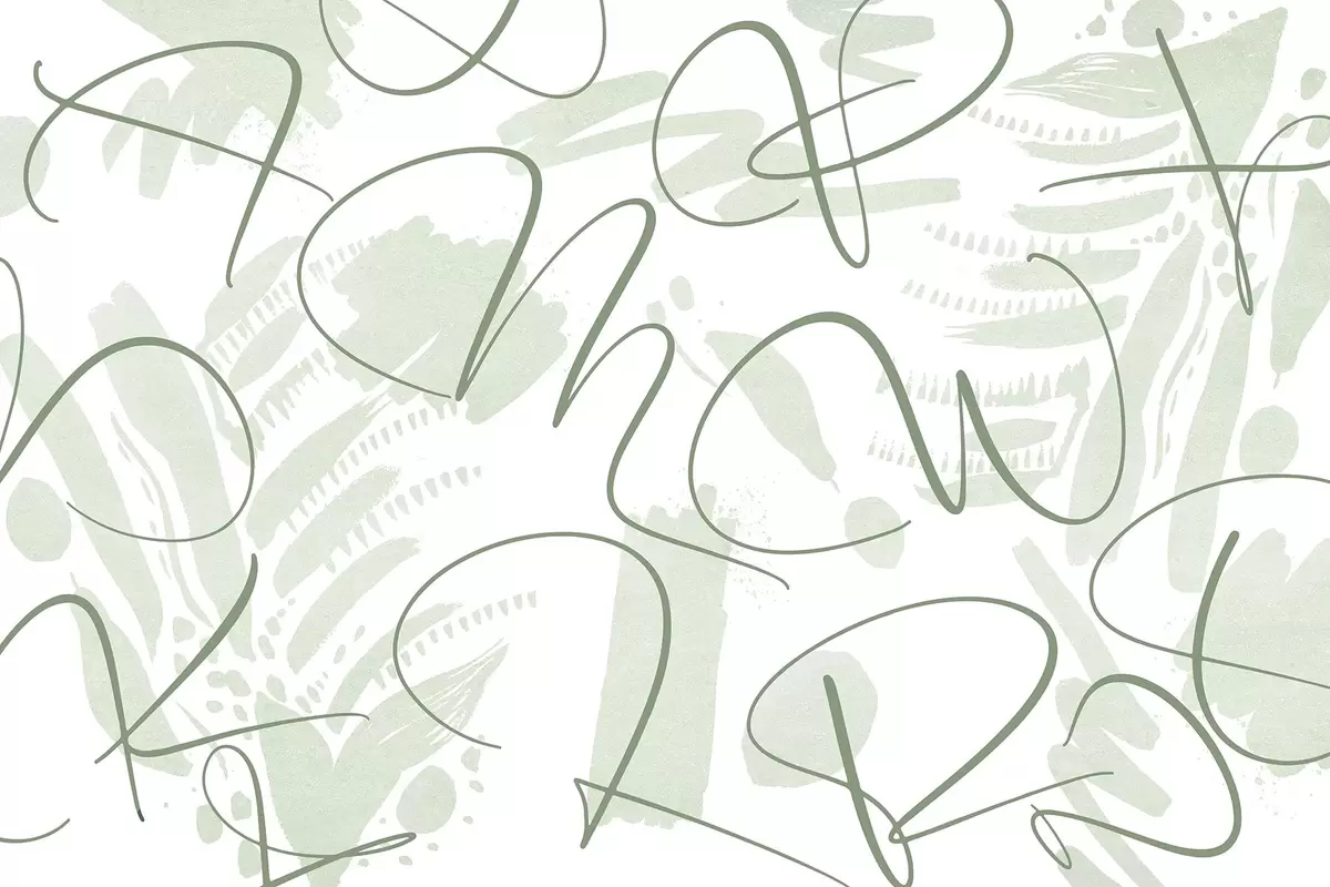 Fototapety Kaligrafická abstrakce s písmeny, tahy štětcem, zelená barva Č. w03913v3