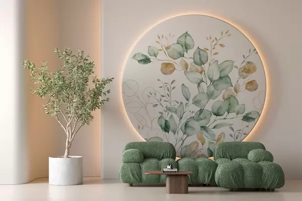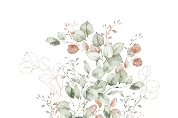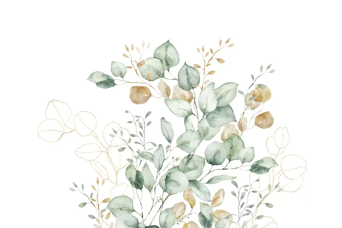 Fototapety Vegetace a větve imitující strukturovaný akvarel, odstíny zelené a žluté barvy Č. w03927