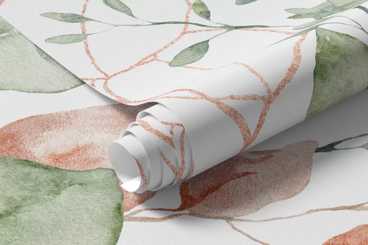 Fototapety Vegetace a větve imitující strukturovaný akvarel, odstíny zelené a červené barvy Č. w03927v1