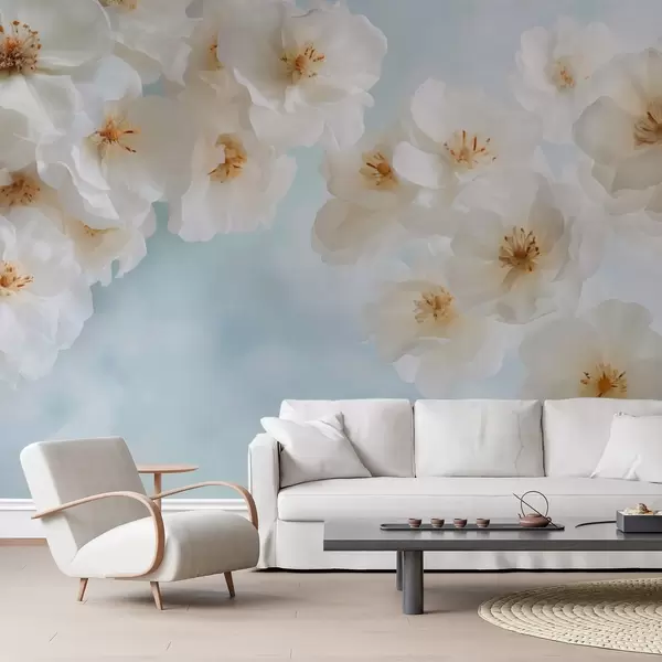 Fototapety Jemné velké květy na světle modrém pozadí Č. w03931v1