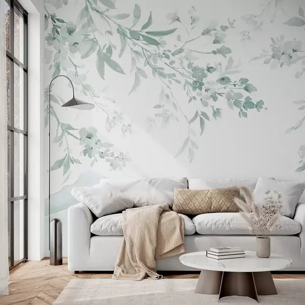 Fototapety Kvetoucí větve, imitace akvarelu, zelené odstíny Č. w03935v3