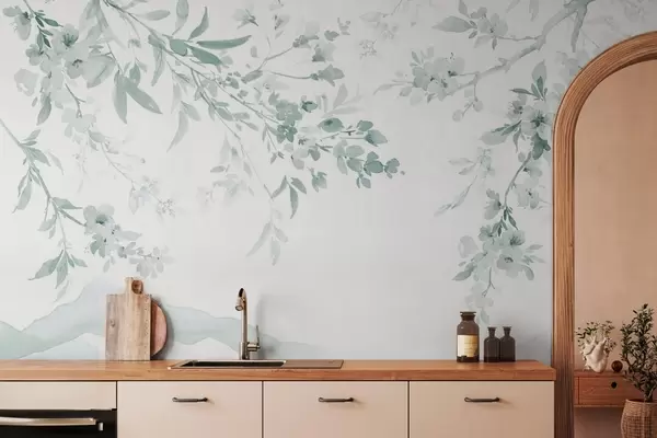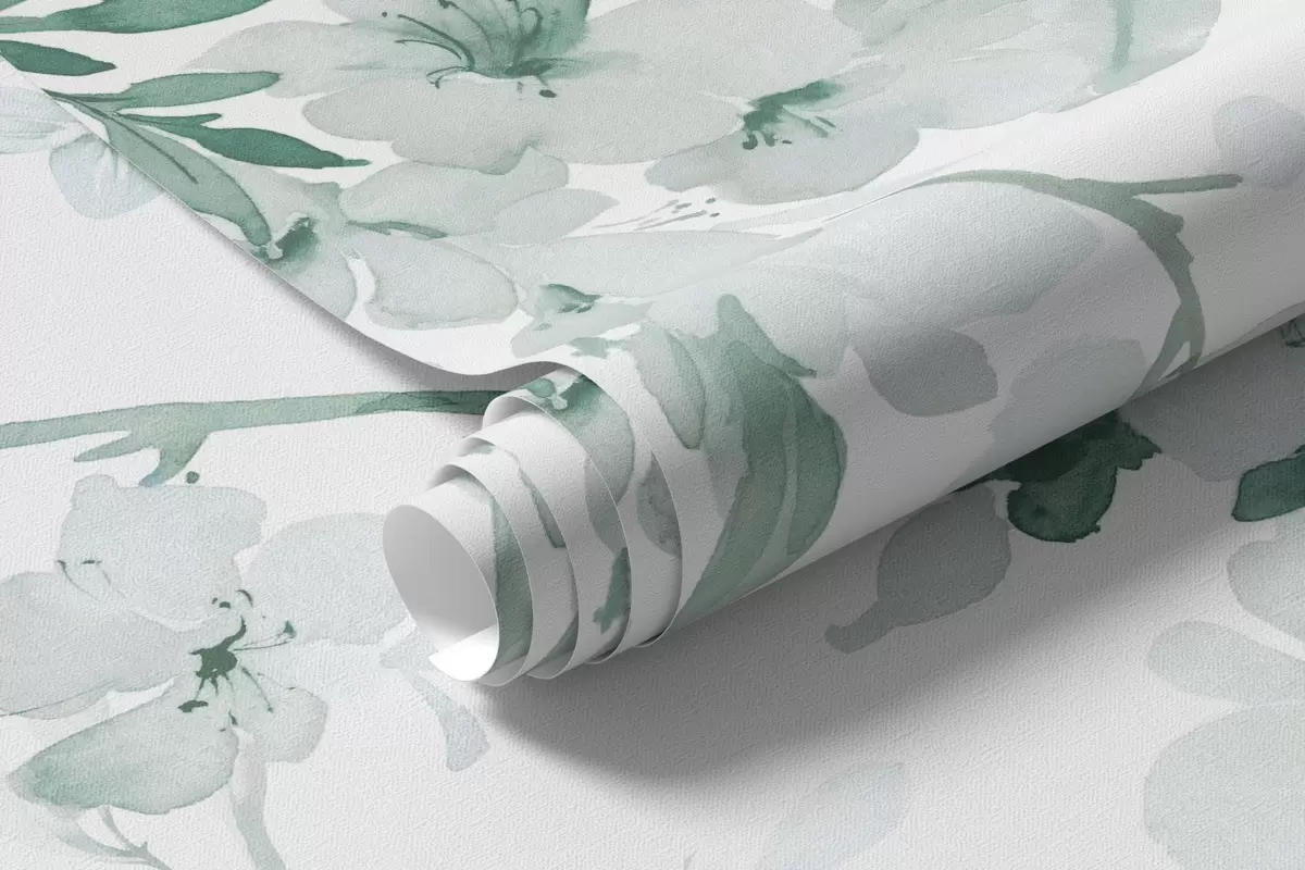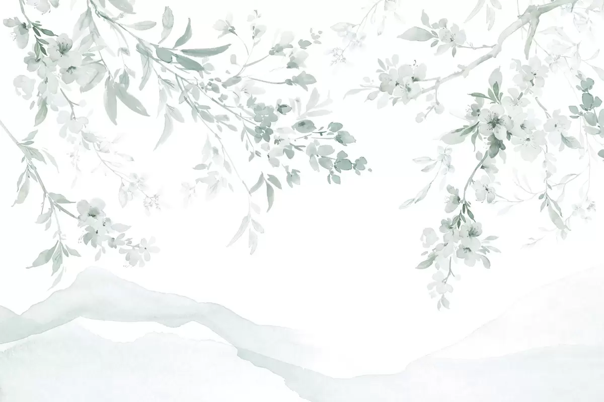Fototapety Kvetoucí větve, imitace akvarelu, zelené odstíny Č. w03935v3
