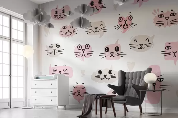 Fototapety Kočičí obličeje v odstínech růžové Č. w03951v1
