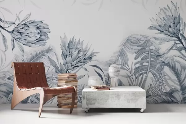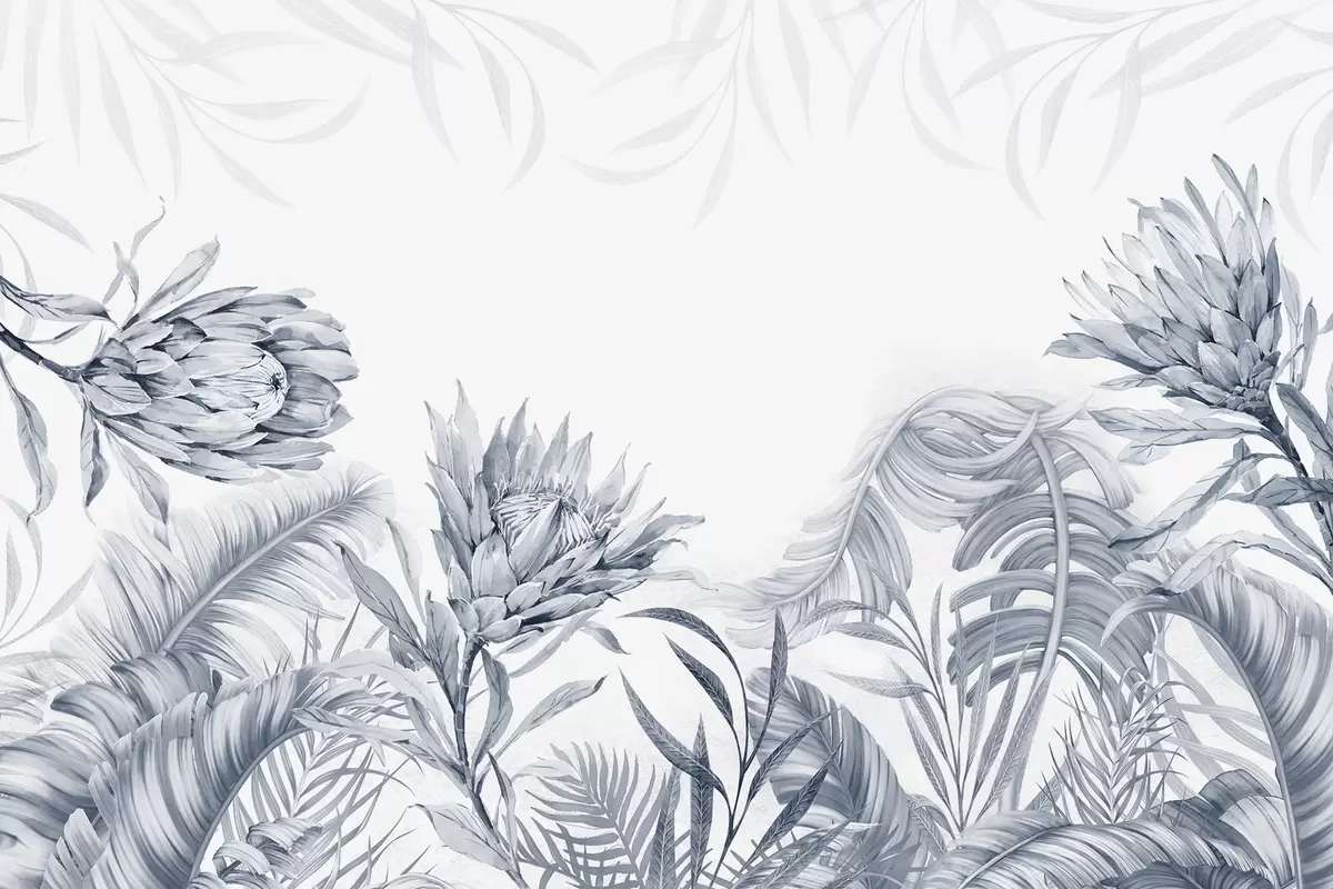 Fototapety Protea mezi tropickými listy, zelené odstíny Č. w03952v2