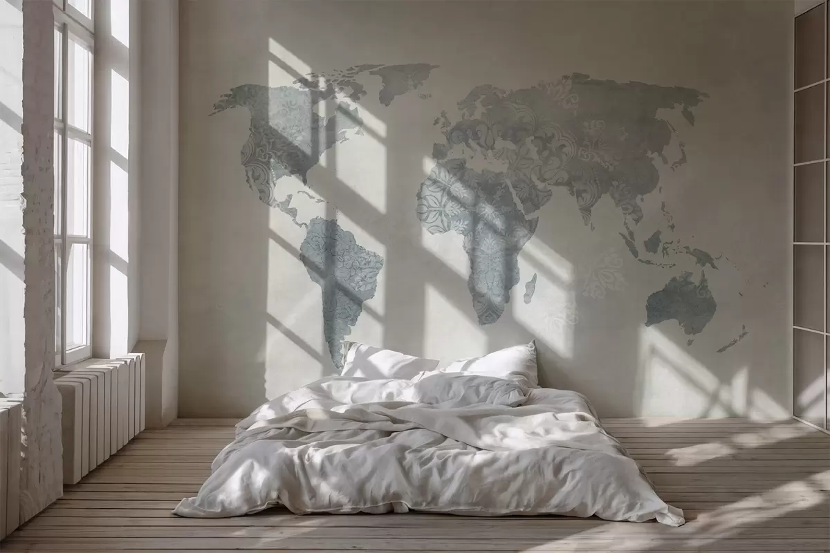 Fototapety Mapa světa se vzorem, modré odstíny Č. w03954v2