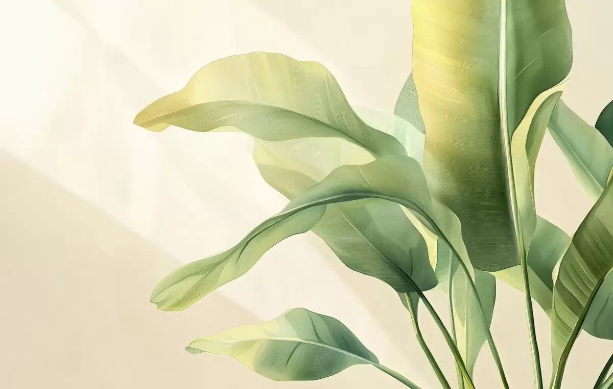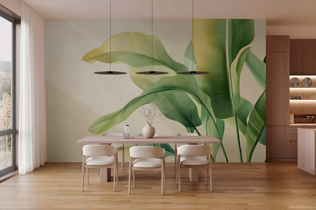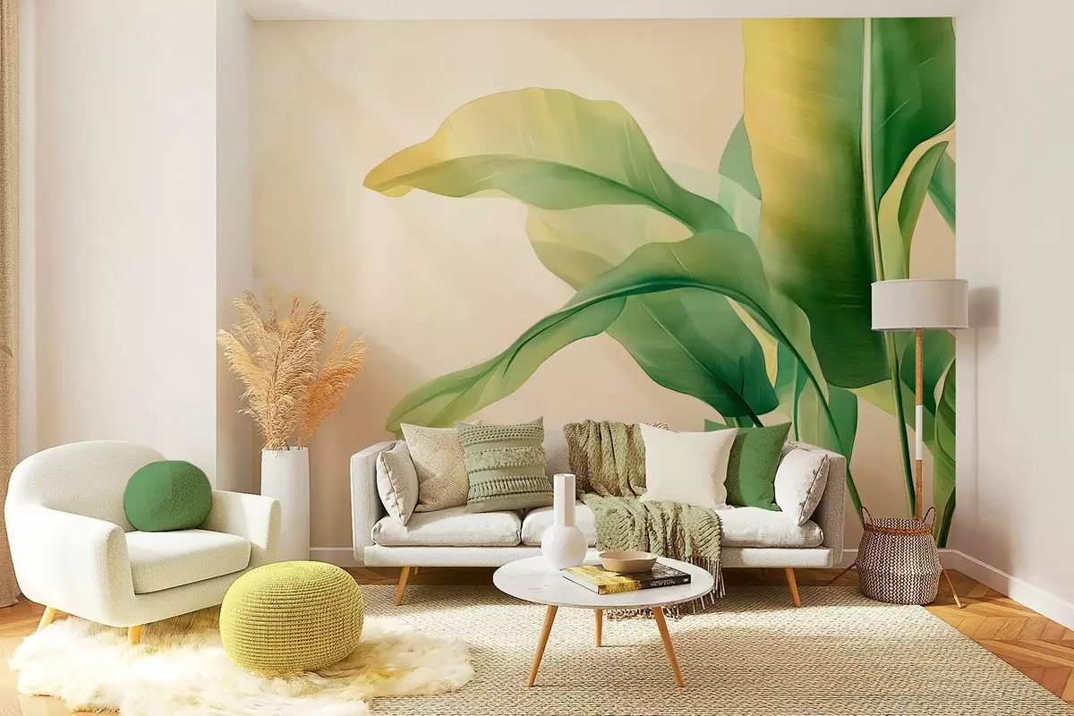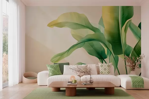 Fototapety velké zelené tropické listy na boku Č. w03959