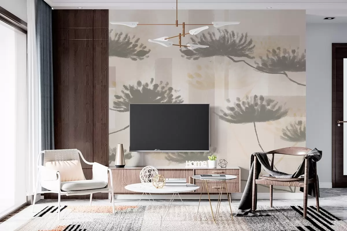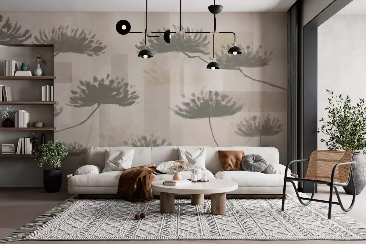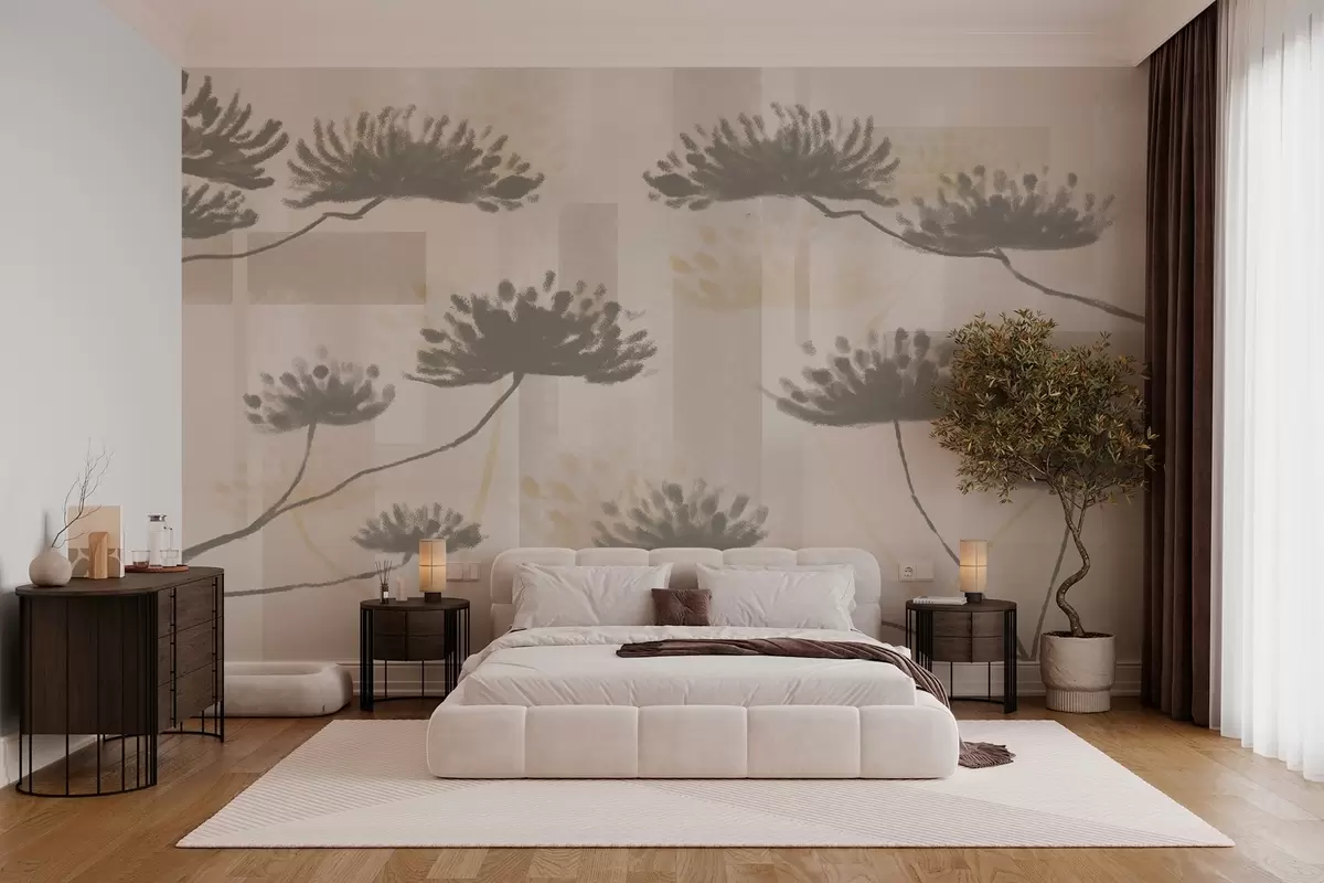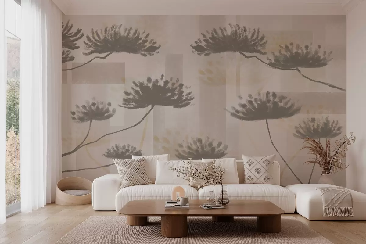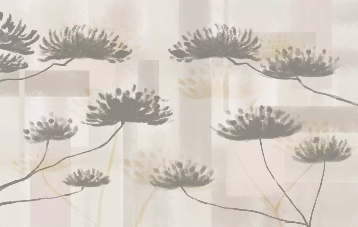 Fototapety geometrie s texturou v béžových a krémových tónech se stylizovanými květy deštníků Č. w03960
