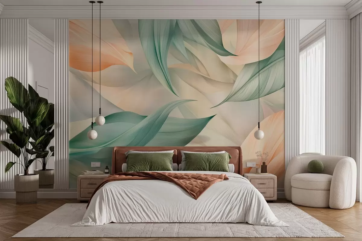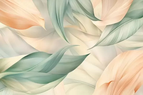 Fototapety exotické tropické listy v jemných broskvových a zelených tónech Č. w03962