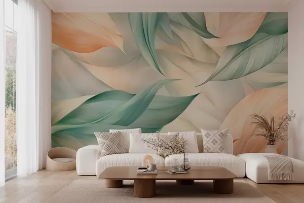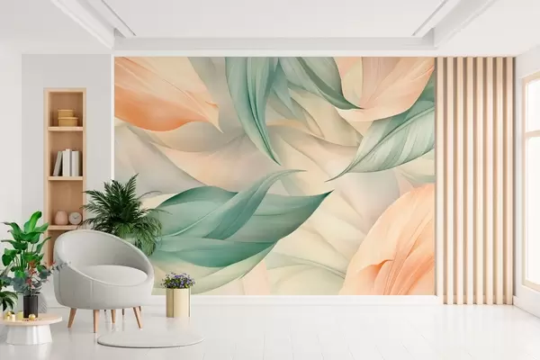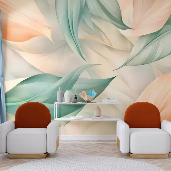 Fototapety exotické tropické listy v jemných broskvových a zelených tónech Č. w03962