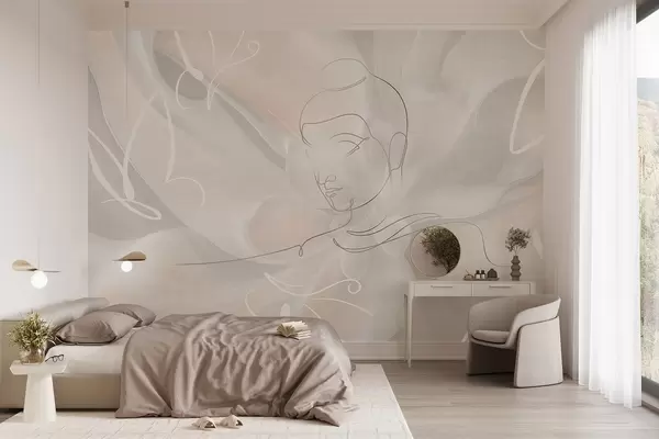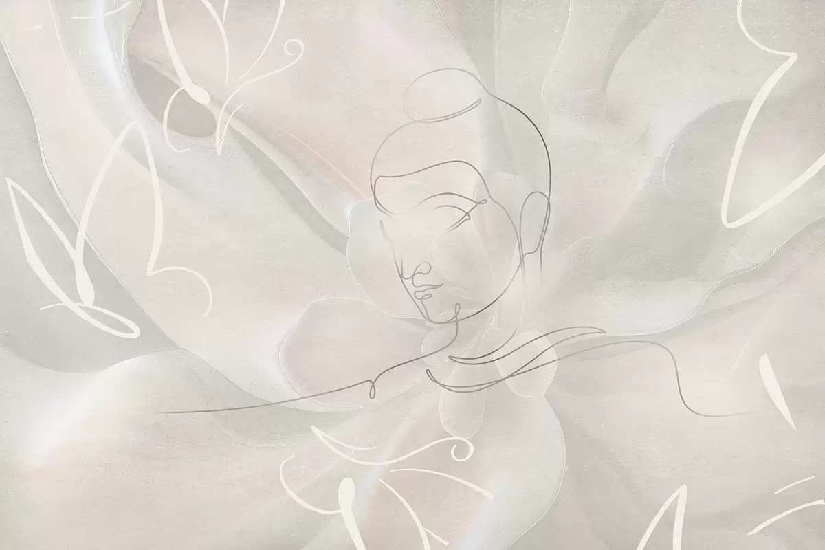 Fototapety Květinová abstrakce s kresbou Buddhy, béžové barvy Č. w04004