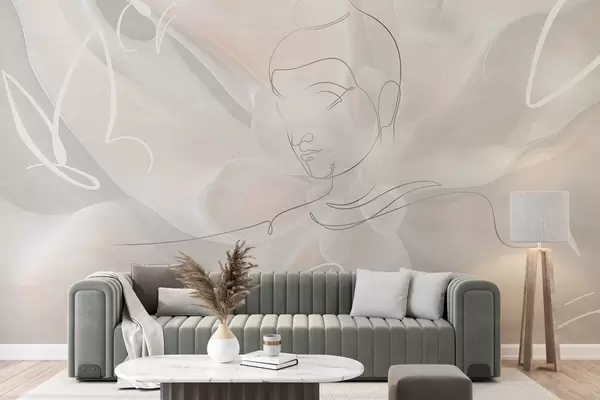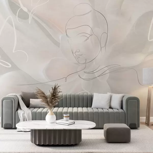 Fototapet Květinová abstrakce s kresbou Buddhy, béžové barvy w04004