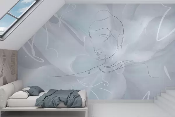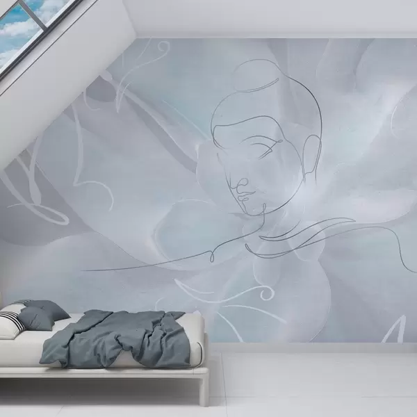 Fototapety Květinová abstrakce s kresbou Buddhy, modré barvy Č. w04004v1