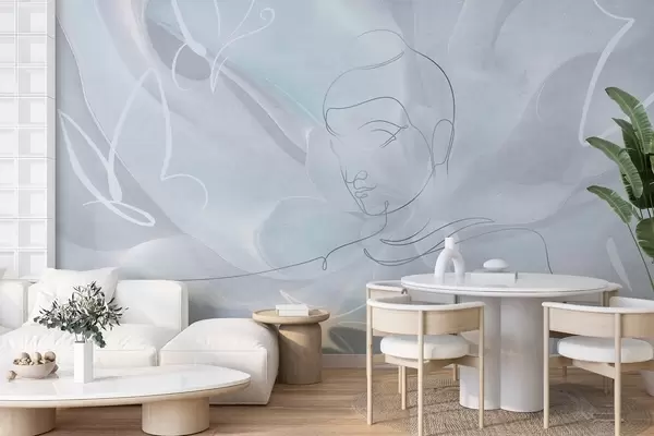 Fototapety Květinová abstrakce s kresbou Buddhy, modré barvy Č. w04004v1