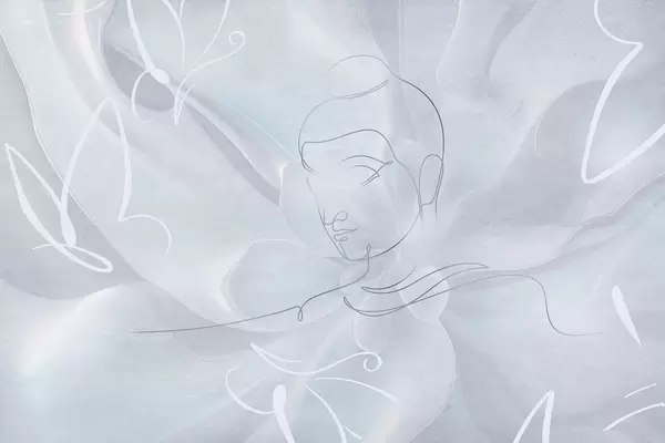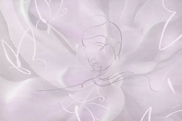 Fototapety Květinová abstrakce s kresbou Buddhy, růžové barvy Č. w04004v2